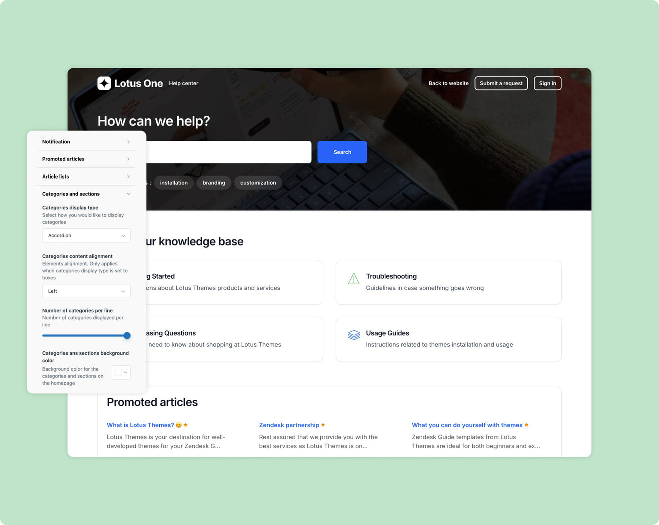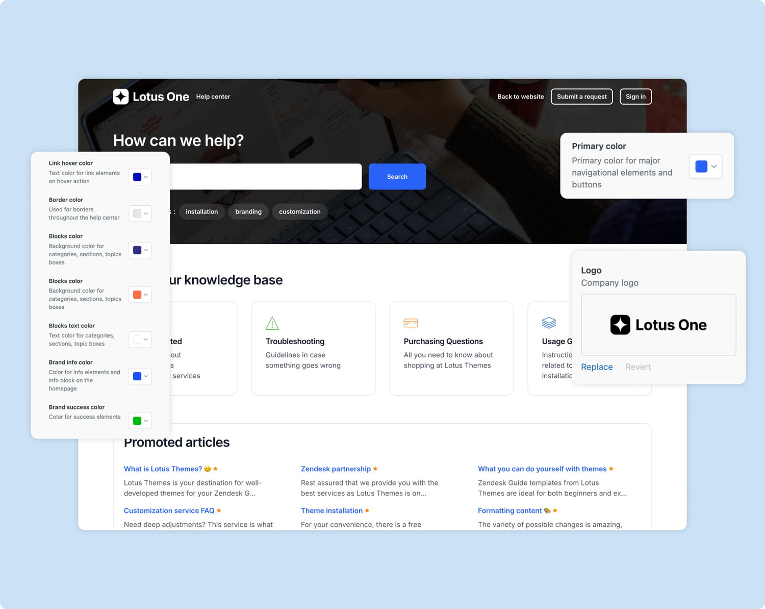 After a super simple installation, your Help Center will have a completely new look and feel.